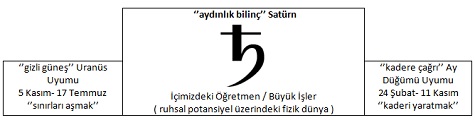 "karmanın efendisi" Satürn’ün Uranüs ile uyumu ay ortasına kadar devam ediyor olacak. "değişim"in sorumluluğunu almak gerek! Ay düğümü ile büyük ateş uyumu oluşuyor, enerjiyi bilinçli ve disiplinli kullanabilmenin önemi doğuyor. Bir yol seçin ve o yol sizi "tutku"nuza götürsün. Aşk, zamansızlığın kapısını açan ışıktır. Onu görün. Nisan sonu itibariyle başlayan Satürn gerilemesi bizi biraz daha kendi halimize bırakmış olsa da Ağustos ayında ileri harekete geçmesiyle ertelediklerimiz ve görmezden geldiklerimiz bizi köşeye sıkıştıracaktır. Şimdiden bir yerden başlamak, gerekli hazırlığı yapmak lazım! Büyük düşünün! Bunun detayların ve bütünlüğün önemini göz ardı etmek anlamına gelmediğini bilerek... Başarı, tesadüf değildir ve sistem işidir.
